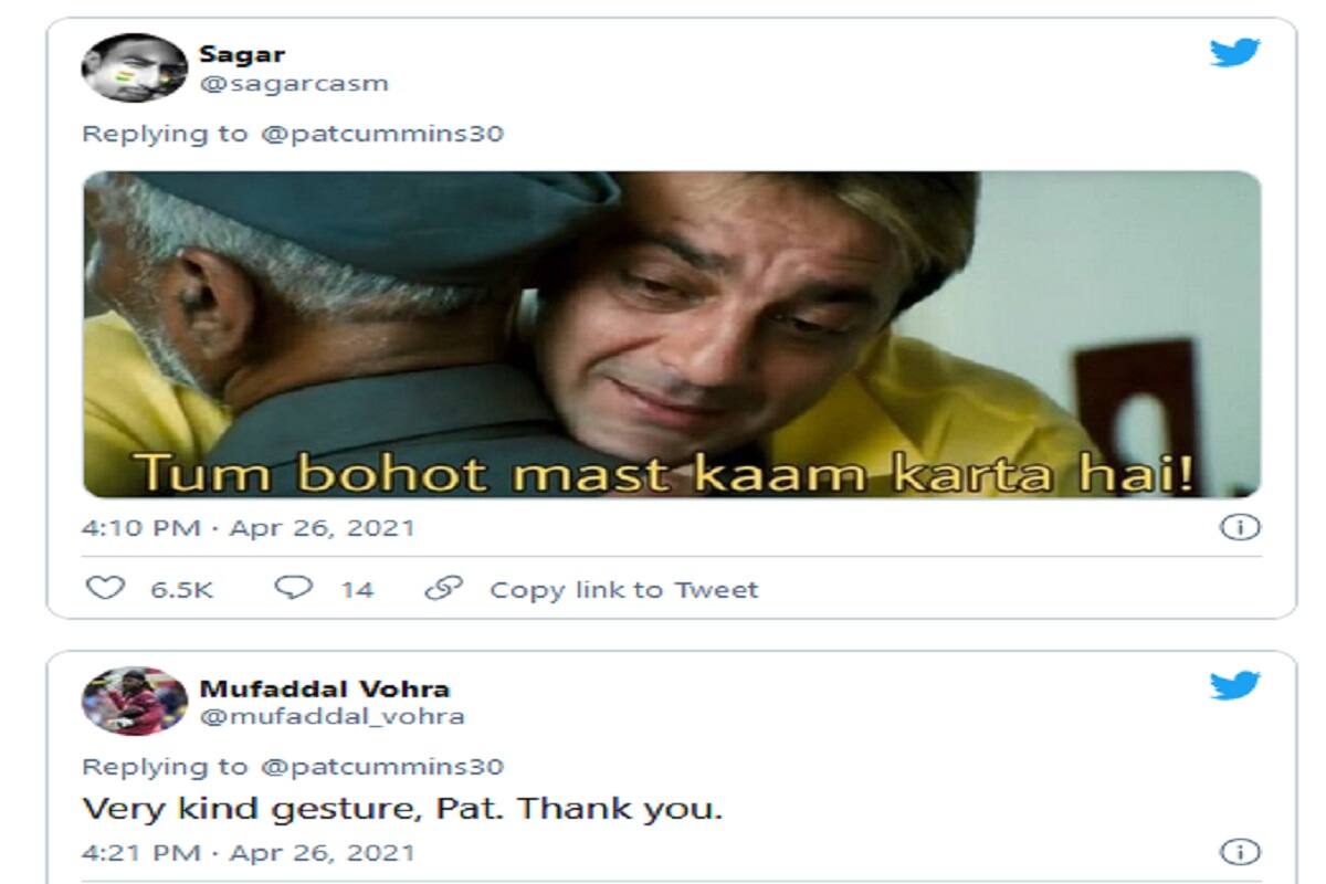 પેટ કમિન્સની ઉદારતા અને ભારતીયો પ્રત્યેના પ્રેમને જોઈને દેશી ક્રિકેટ ચાહકો મિમ્સ અને શબ્દોથી તેની પ્રશંસા કરી હતી. હૈલ @patcummins30 અમારા સંકટ સમયમાં આપની આ નમ્ર હૃદયની મદદ અમે હંમેશાં યાદ રાખીશું, તમે મેદાનના જોરદાર પ્લેયર હોવાની સાથે તમારા દિલમાં સુપર સ્પોર્ટસમેનશિપ છે.